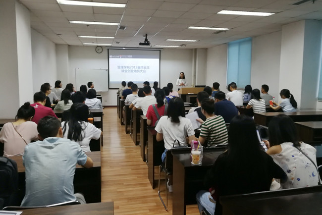 2019届硕士毕业生就业创业动员大会在文管大楼110教室召开。美女直播