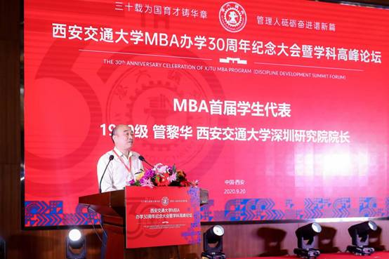 基本情况、30周年庆典活动的意义、30年以来MBA教育的成效以及对MBA教育未来的展望。面对新时代新发展新机遇,西安交大MBA将始终秉承“胸怀大局、无私奉献、弘扬传统、艰苦创业”西迁精神,聚焦核心任务,加强课程教育与实践相结合,真正使交大MBA人为社会的繁荣发展做出更大贡献。